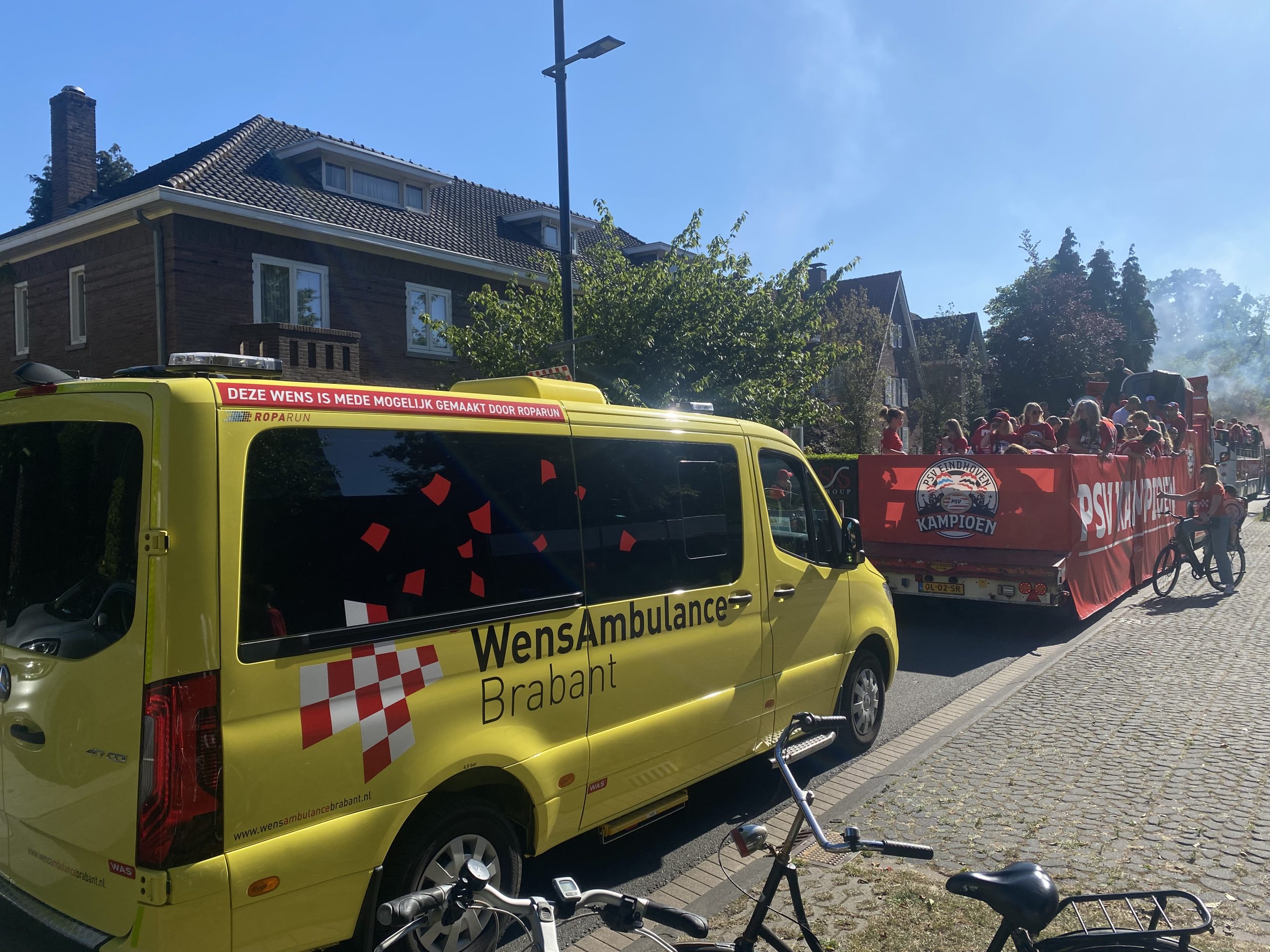 Onze wensvrager had nog één wens: de huldiging van PSV bijwonen. WensAmbulance Brabant regelde dat hij samen met zijn broers het kampioensfeest mee kon maken.
