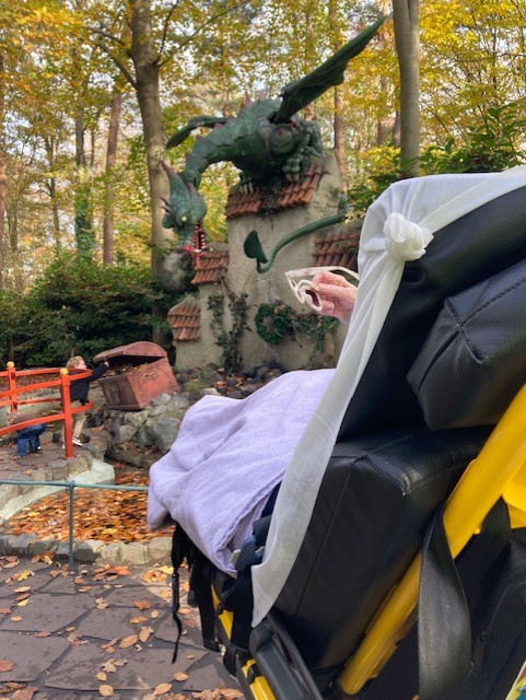 Door emotie vloeiden de tranen. Ook het besef dat dit echt de laatste keer is dat je moeder bij en met jou in de Efteling is kwam diep binnen. Moe, dankbaar, voldaan en vol verhalen kwam mevrouw weer terug in het verzorgingshuis.