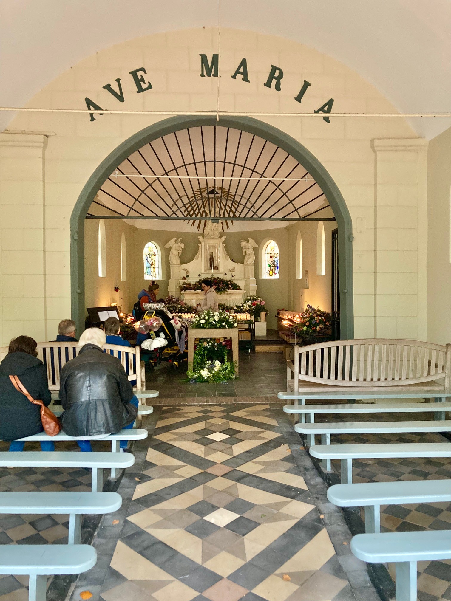 Bij de kapel van de Heilige Eik stonden vrienden en familie te wachten. Wat een verrassing. Met zijn drieën eerst even een intens moment van samenzijn in de kapel … Wat was het daar een verrassende bloemenzee. Dit moest zo zijn… Daarna bijkletsen met de vrienden en familie.
