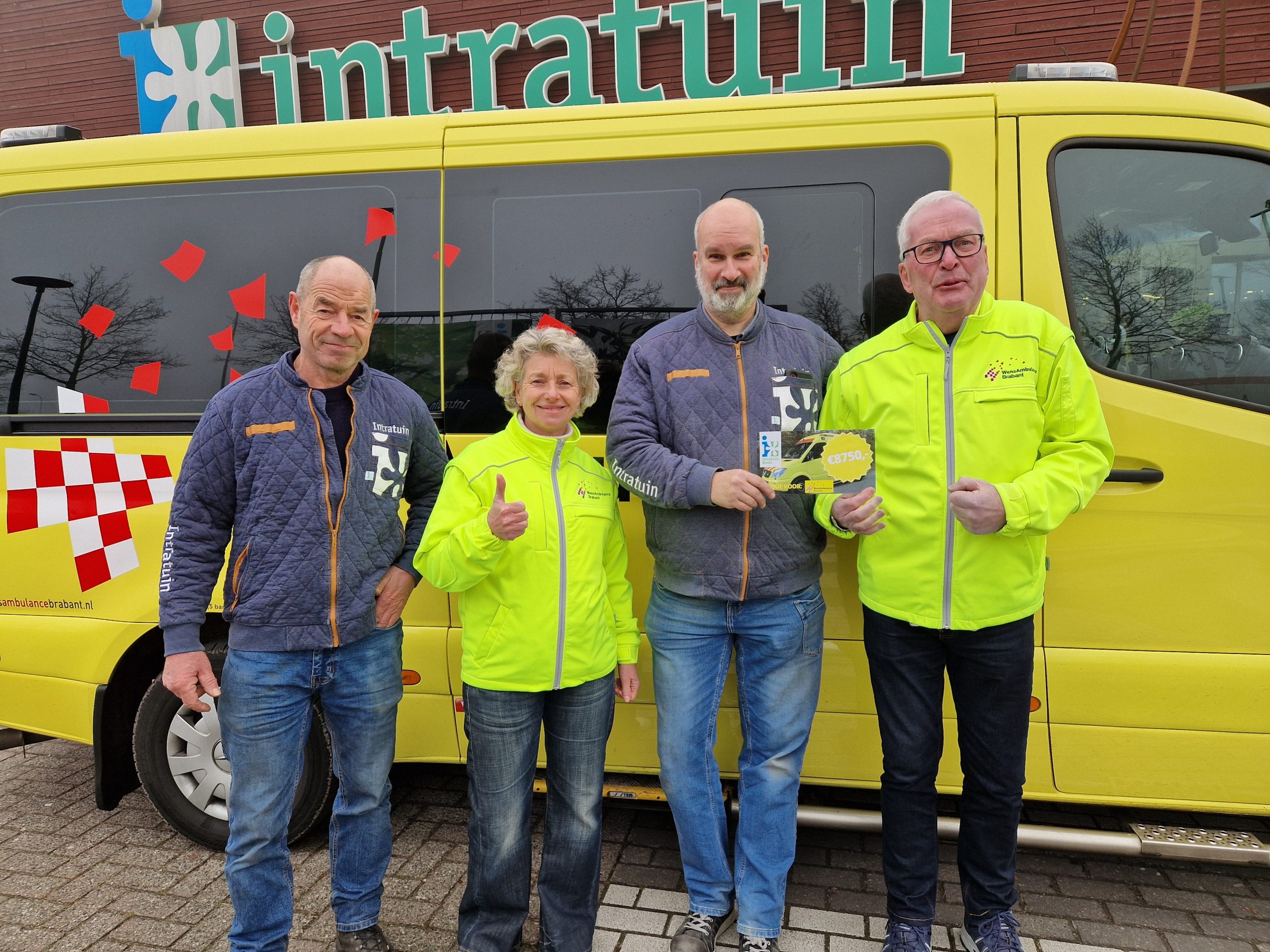 Het resultaat van heeft de stoutste verwachtingen overtroffen. In totaal hebben de klanten van Intratuin een bedrag van € 8.407,– gedoneerd en Intratuin heeft dat afgerond tot € 8.750,–. Een schitterend bedrag waarmee WensAmbulance Brabant weer vele mooi wensreizen kan verzorgen en dus heel veel mensen gelukkig kan maken.